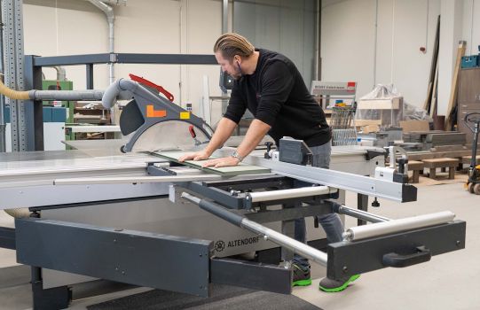 In unserer unternehmenseigenen Tischlerei bearbeiten wir unseren vor Ort hergestellten GCC-Werkstoff direkt weiter und können so auch spezielle Kundenwünsche erfüllen. Ob Sägen, Schleifen oder Fräsen mit modernster CNC-Technik - unsere Holzbearbeitungsmechaniker:innen gehen ohne Splitter in den Feierabend, denn unser GCC-Werkstoff ist frei von gefährlichen Splittern.